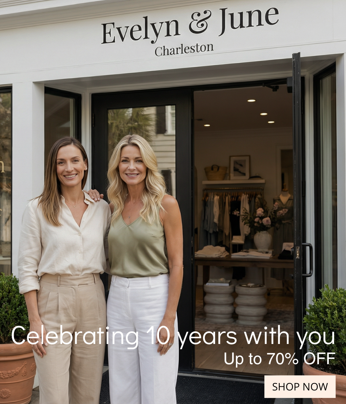 Now, more than ten years later, Evelyn & June continues to grow with a loyal community of customers across the United States. Their approach remains the same: thoughtful selections, warm service, and clothing designed to help women feel comfortable, confident, and truly themselves.